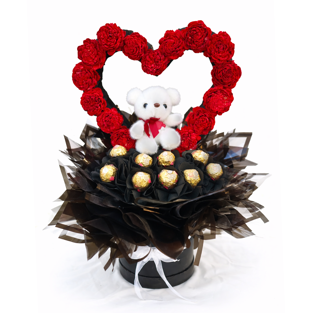 A bold expression of love wrapped in elegance. This luxurious black round box features a stunning red rose heart frame,... Read more