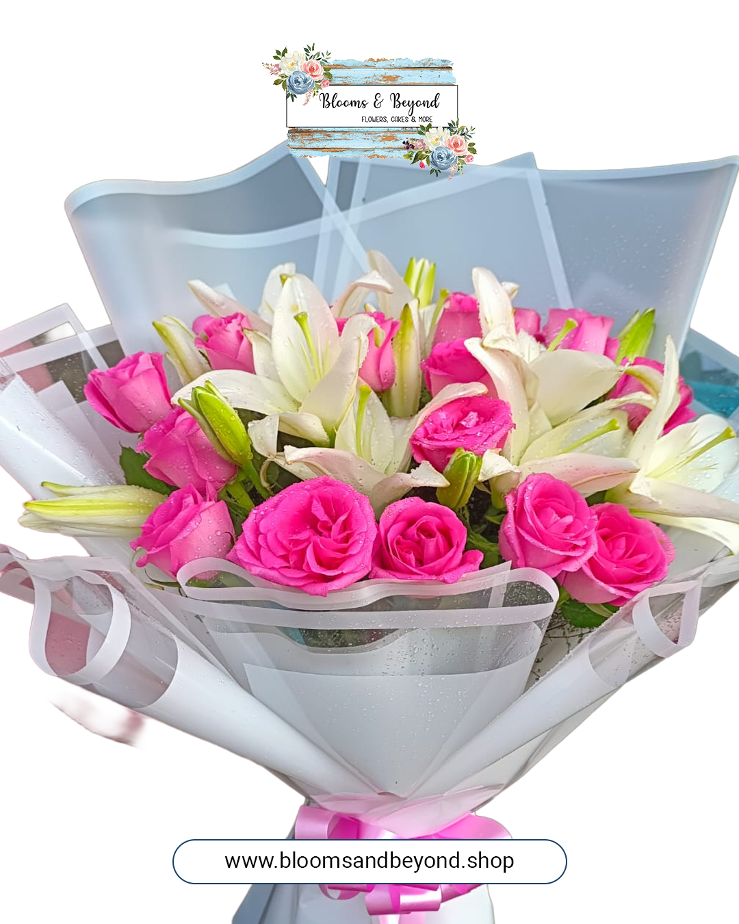 Pink Roses & White Lilies Bouquet