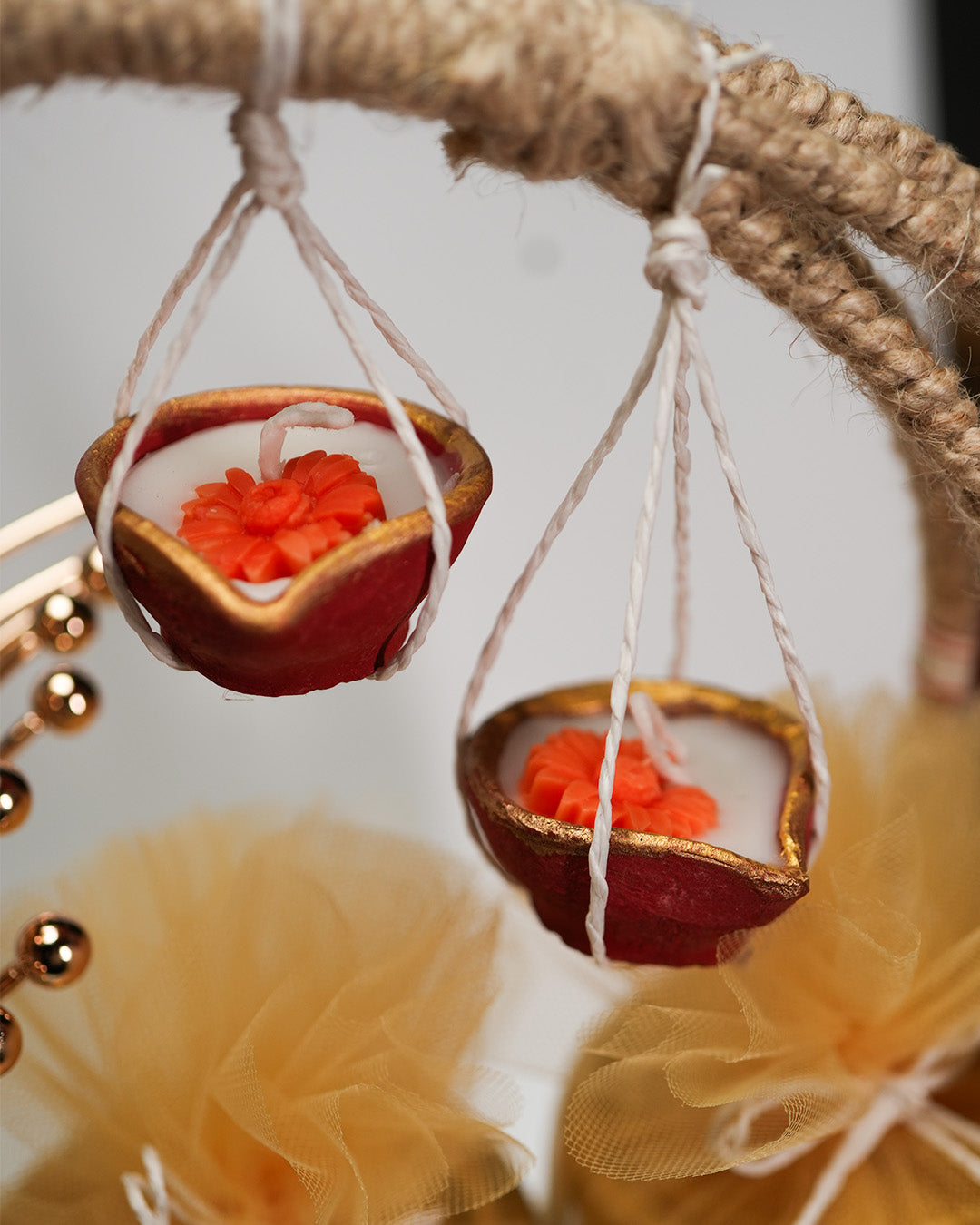 A masterpiece of craftsmanship and festive elegance, The Golden Harmony Hamper embodies Diwali’s radiant spirit. Wrapped in natural jute and embellished with delicate diyas, this handcrafted basket holds luxurious treats and golden keepsakes that celebrate prosperity, light, and togetherness.