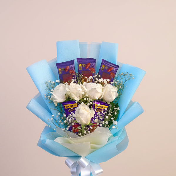 White Rose & Chocolate Bouquet Surprise your loved ones with this delightful White Rose & Chocolate Bouquet, a perfect combination... Read more